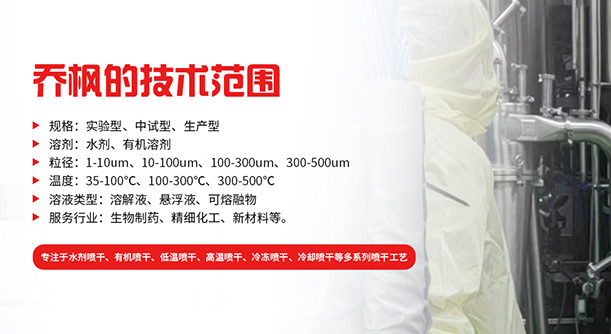 喬楓發(fā)明了新的低溫噴霧干燥技術(shù),在低溫的狀態(tài)下保持物料活性,某種程度上可以取代凍干機(jī),大幅度的提高生產(chǎn)產(chǎn)能。適用于(司美格魯肽、多肽、氨基酸、多種酶菌、多種蛋白、噬菌體、 抗生素、微膠囊、等物料,詳情請咨